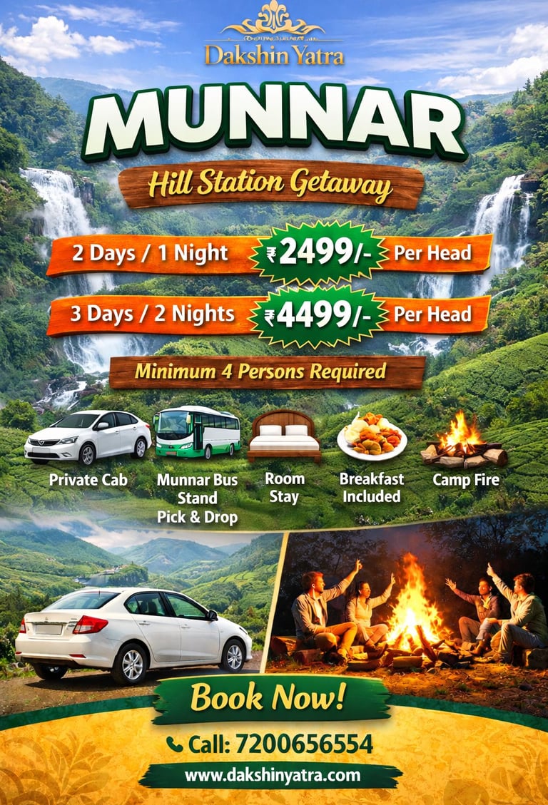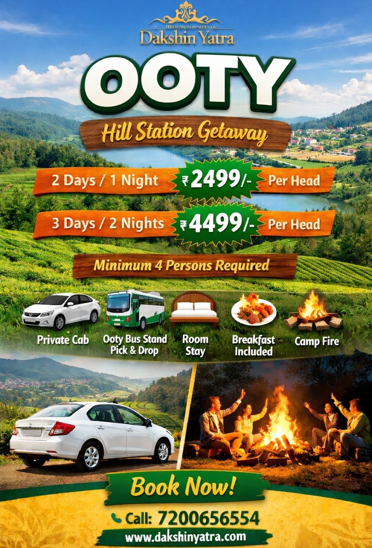 Whether you're planning a spiritual pilgrimage or a scenic road trip through South India, we’re here to make the journey seamless. Have a question about our routes, vehicle fleet, or custom tour packages? Drop us a message below! Our team at Dakshinyatra Cabs is dedicated to providing you with reliable service and a comfortable ride.